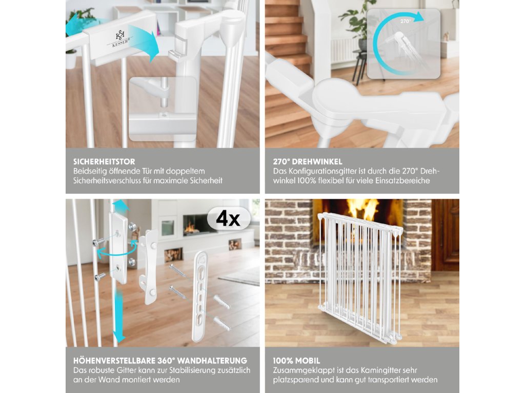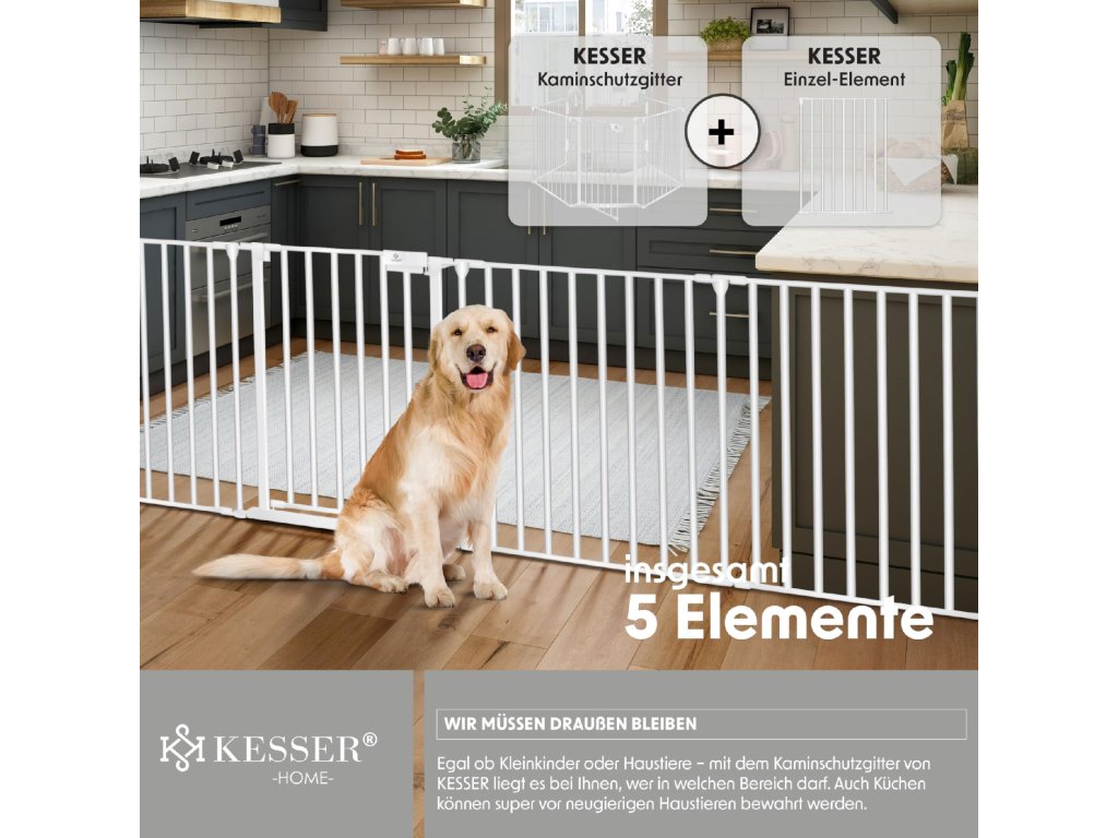 • Kromě použití u krbu jej lze využít jako treppenschutzgitter, laufstall pro zvířata nebo zábranu na dveře.