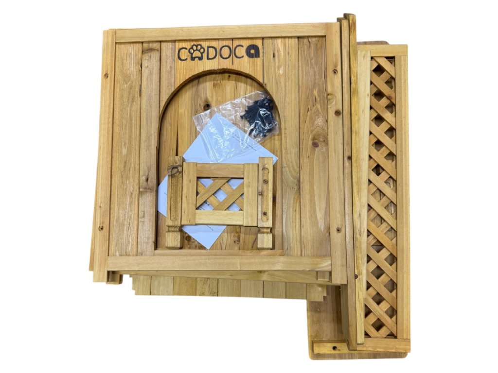 Tento dřevěný domek pro malá zvířata nabízí ideální kombinaci úkrytu, odpočinku i zábavy – ať už pro kočku, malého psa nebo jiné drobné mazlíčky.