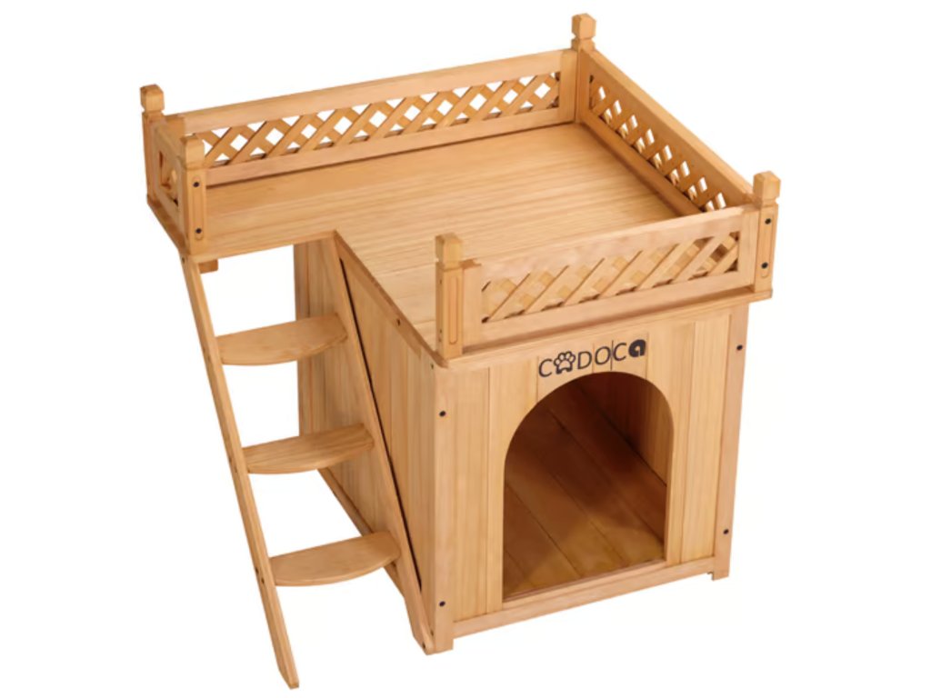 Stylový dřevěný domek se dvěma patry, terasou a schůdky je ideální nejen pro kočky, ale i malé pejsky a další drobná zvířata.