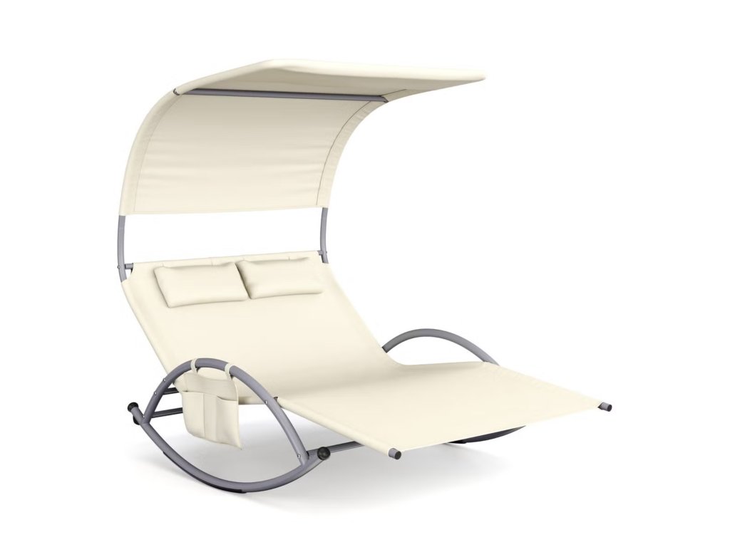 Užijte si chvíle pohody ve dvou s pohodlnou béžovou dvojitou zahradní houpačkou-lehátkem 🌿.