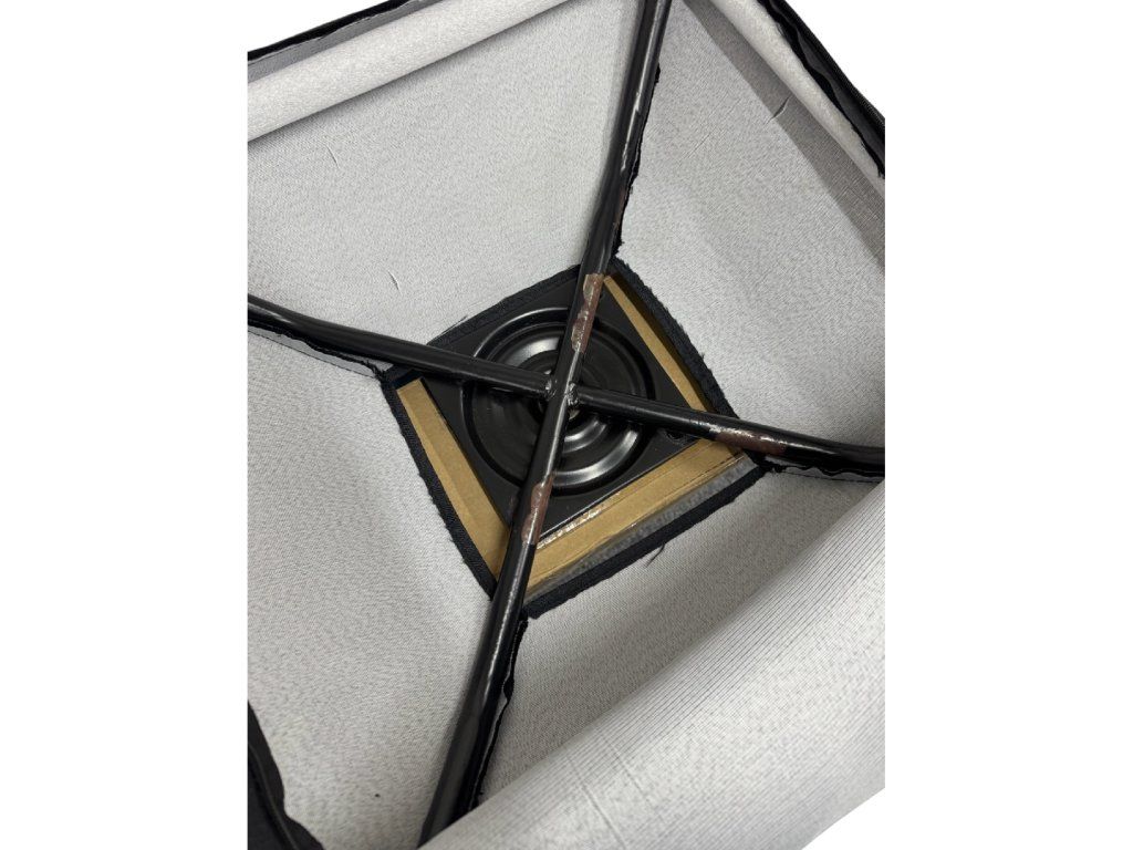 Tento produkt je rozbalený, jako nový, originální obal (krabice) je poškozený. VADA - dvě dírky na ohybu zadní strany a oloupaná barva na konstrukci podstavce (konstrukce je po sestavení překryta látkou).
