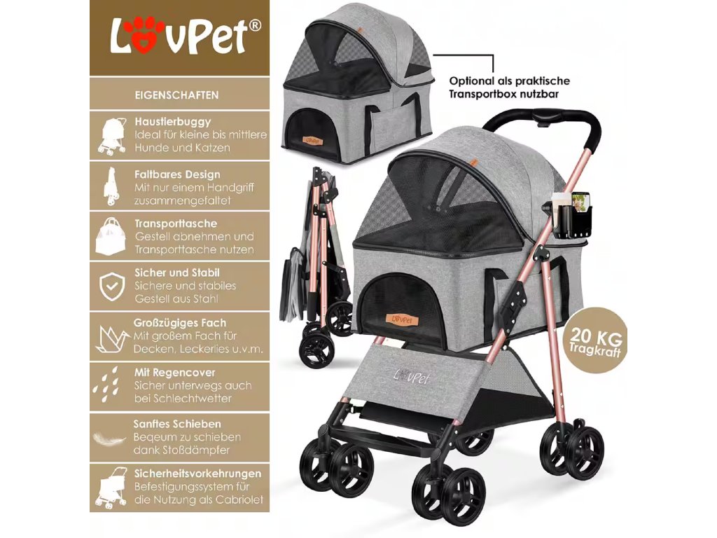Dopřejte svému mazlíčkovi komfortní jízdu s šedým kočárkem LovPet XL!