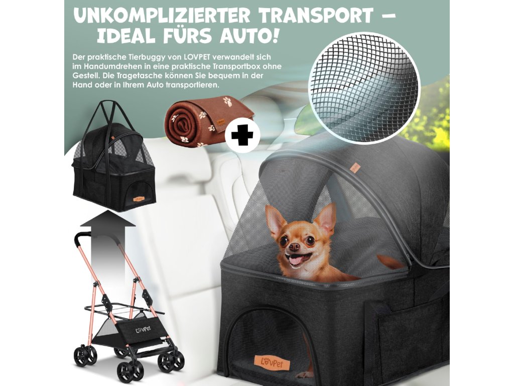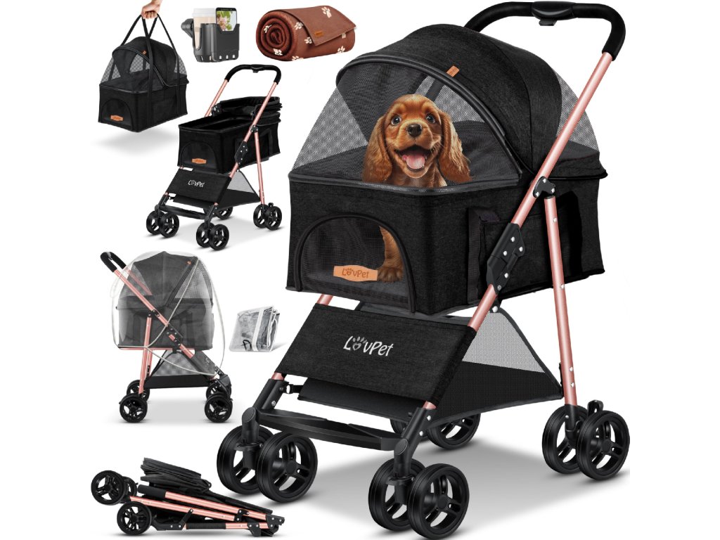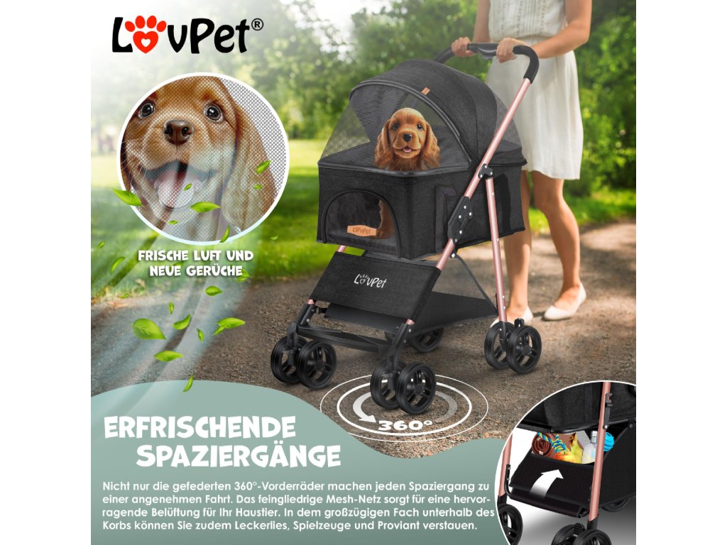 Dopřejte svému mazlíčkovi komfortní jízdu s černým kočárkem LovPet XL!