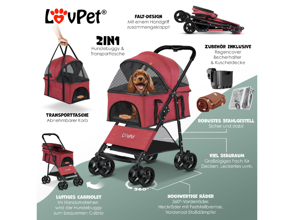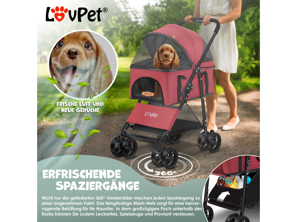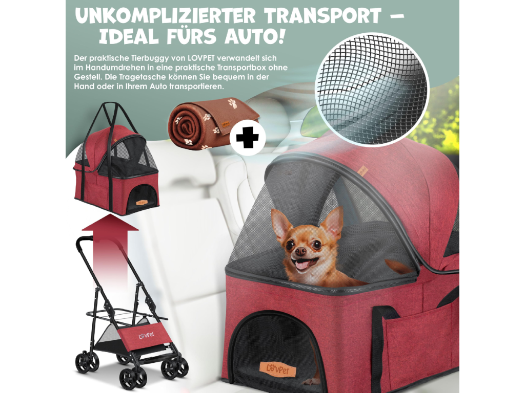 Kočárek pro psy Lovpet - červený