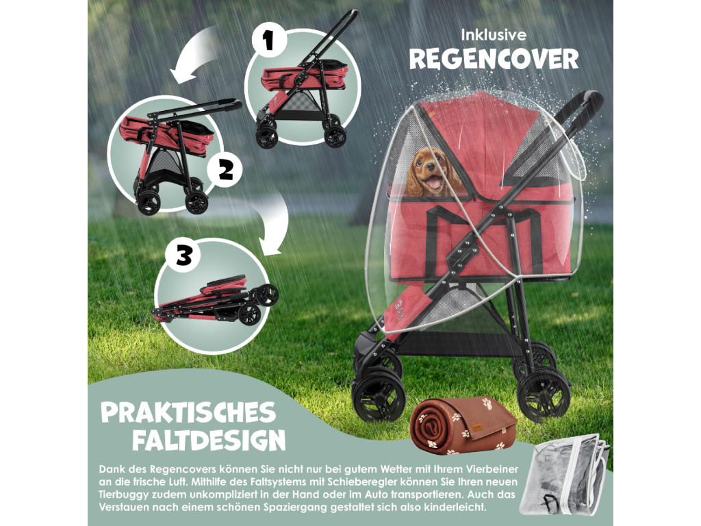 Stylový a prostorný kočárek pro psy 🐶 – ideální pro delší procházky, seniory i mazlíčky po operaci.