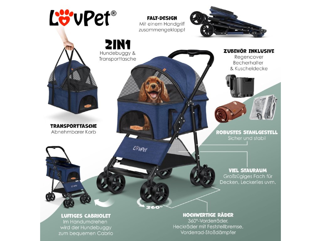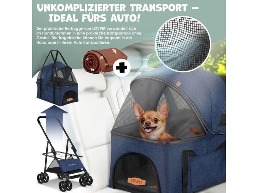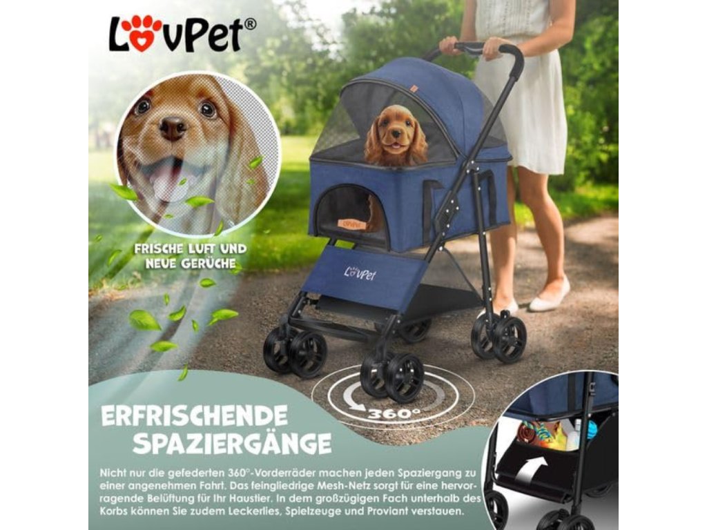 Kočárek pro psy Lovpet modrý