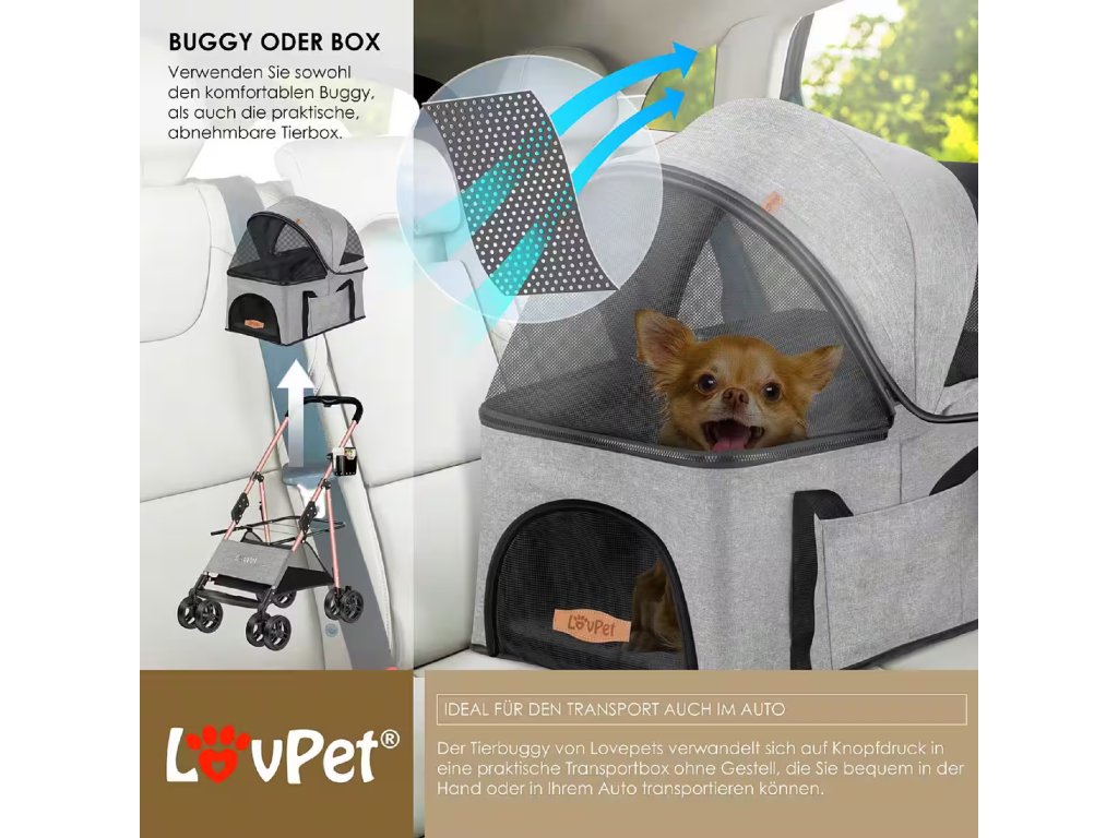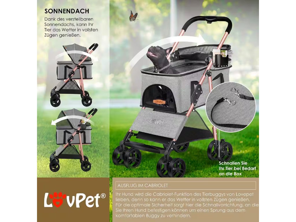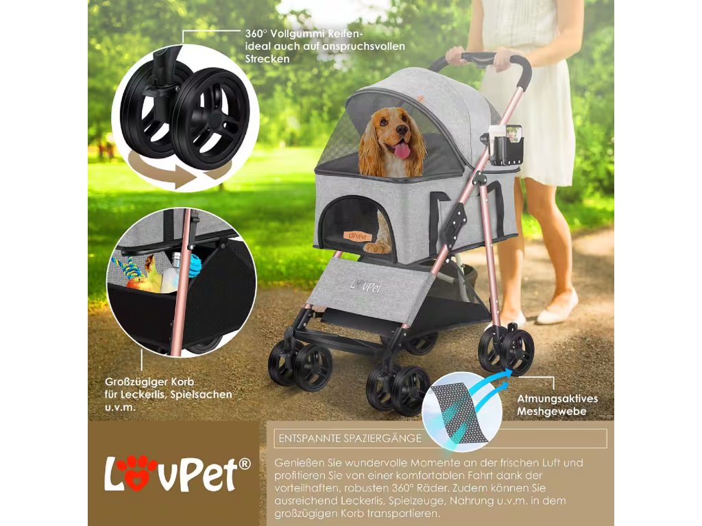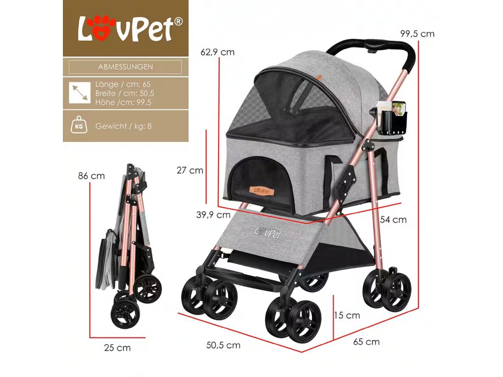 Dopřejte svému mazlíčkovi komfortní jízdu s šedým kočárkem LovPet XL!