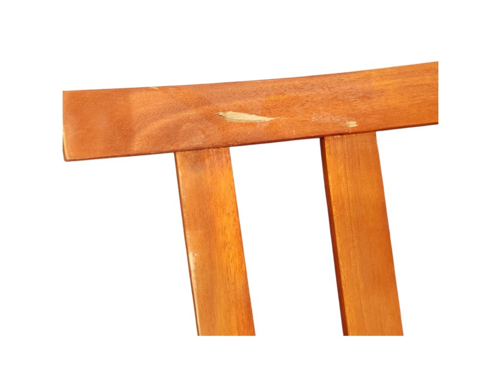 Tento produkt je nový, ale vlivem přepravy došlo k poškození jedné zadní opěrky - spoj je opravený – pevný a plně funkční, pouze drobná estetická stopa po uštípnutí dřeva.