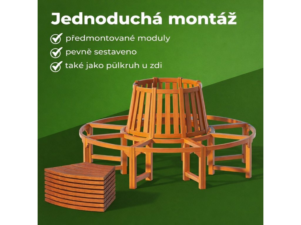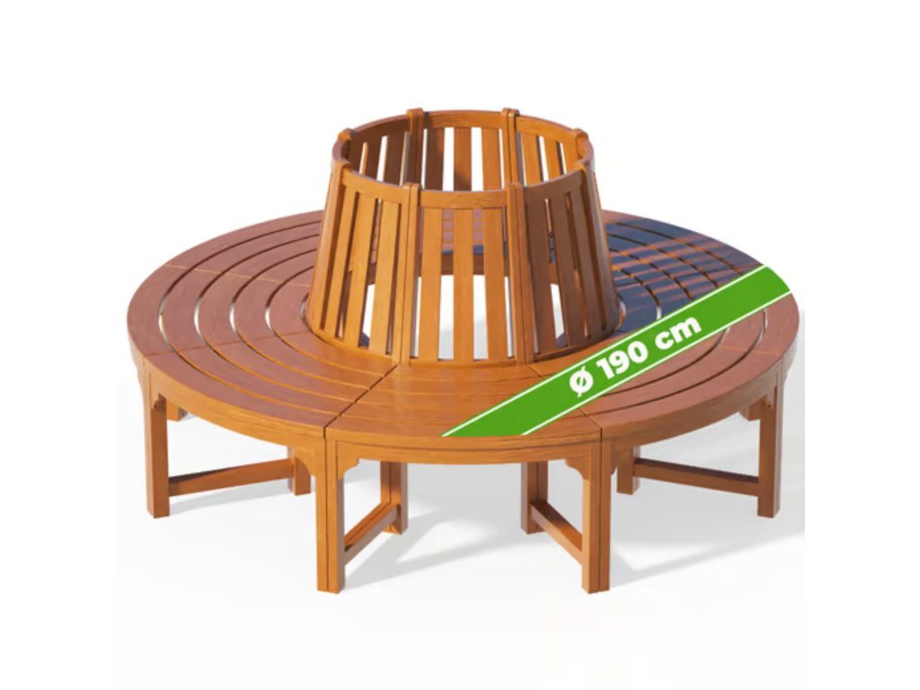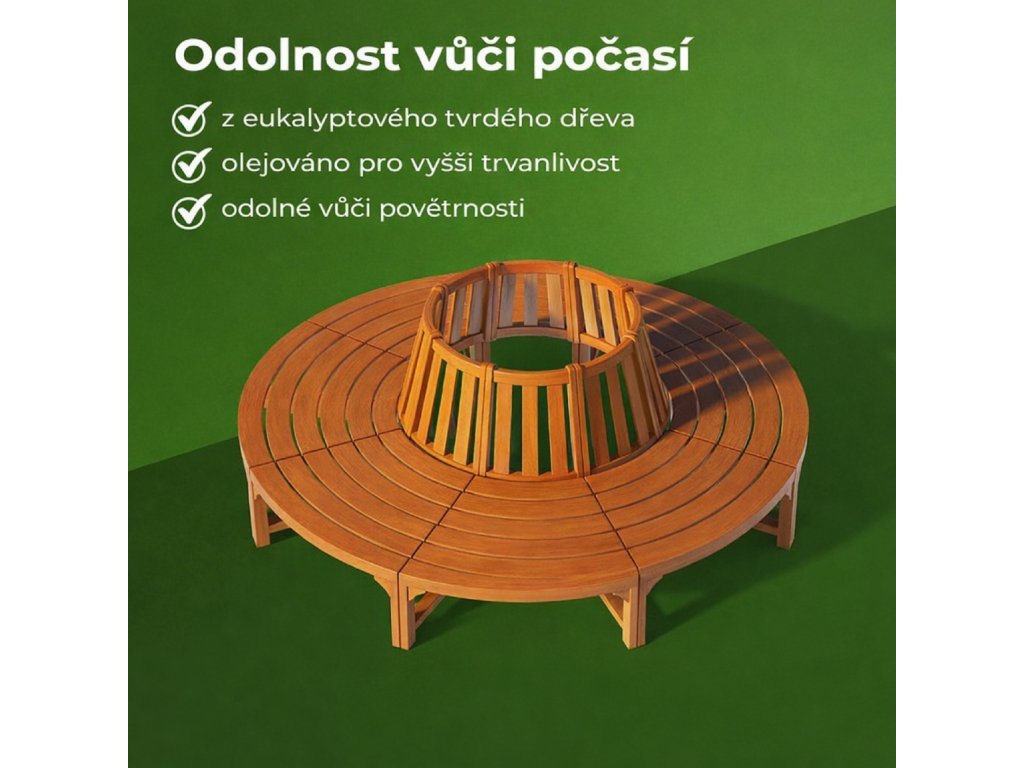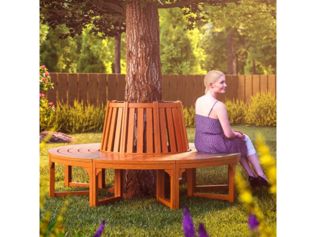 🌳 Stylová kruhová lavička kolem stromu z masivního eukalyptového dřeva vytvoří přirozené posezení na zahradě, v parku i u terasy.