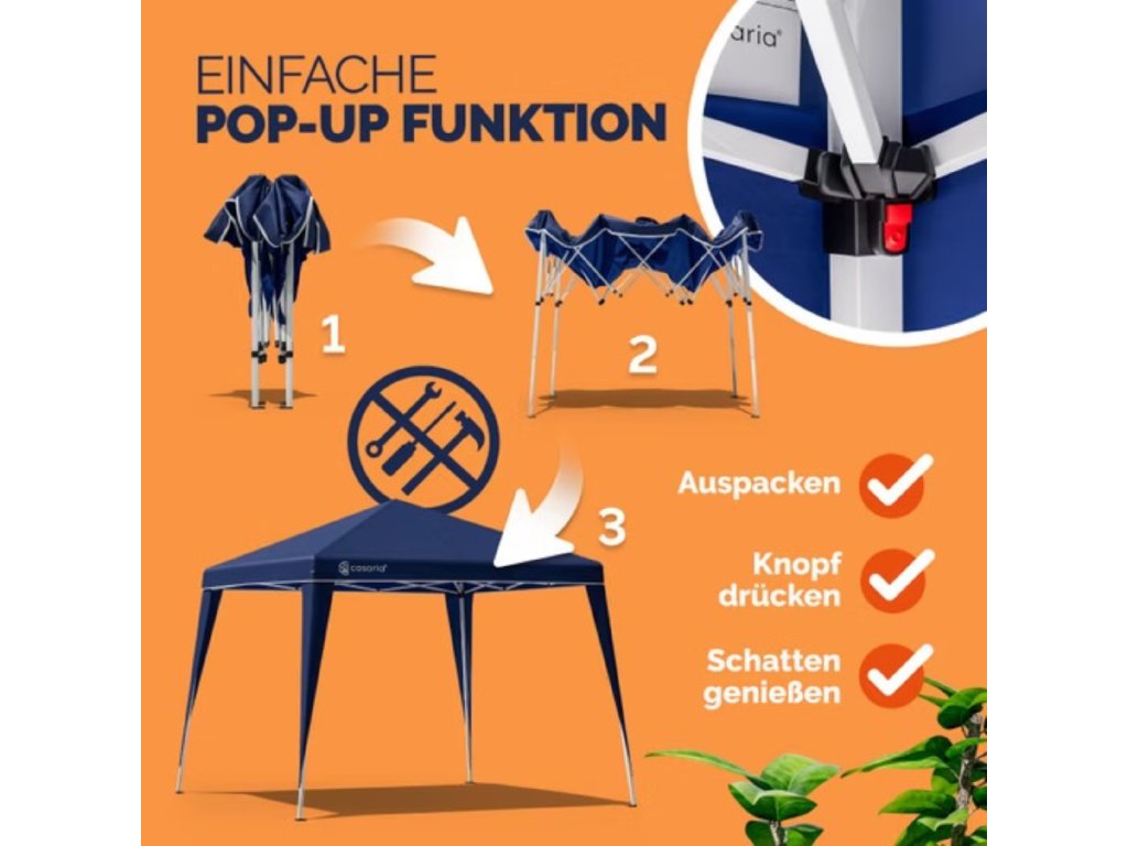 Tento nůžkový party stan o rozměrech 3 × 3 m vám poskytne spolehlivou ochranu před sluncem i lehkým deštěm.