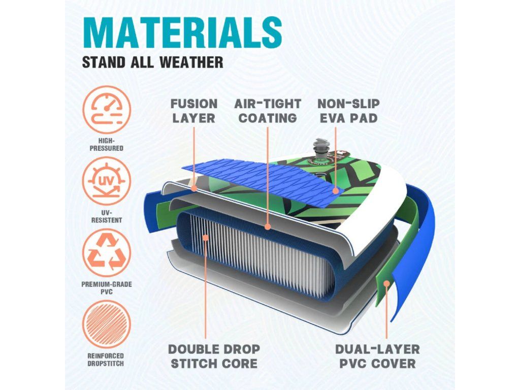 ✨ Paddleboard je vyroben z odolného PVC materiálu, který zajišťuje dlouhou životnost a odolnost proti opotřebení.