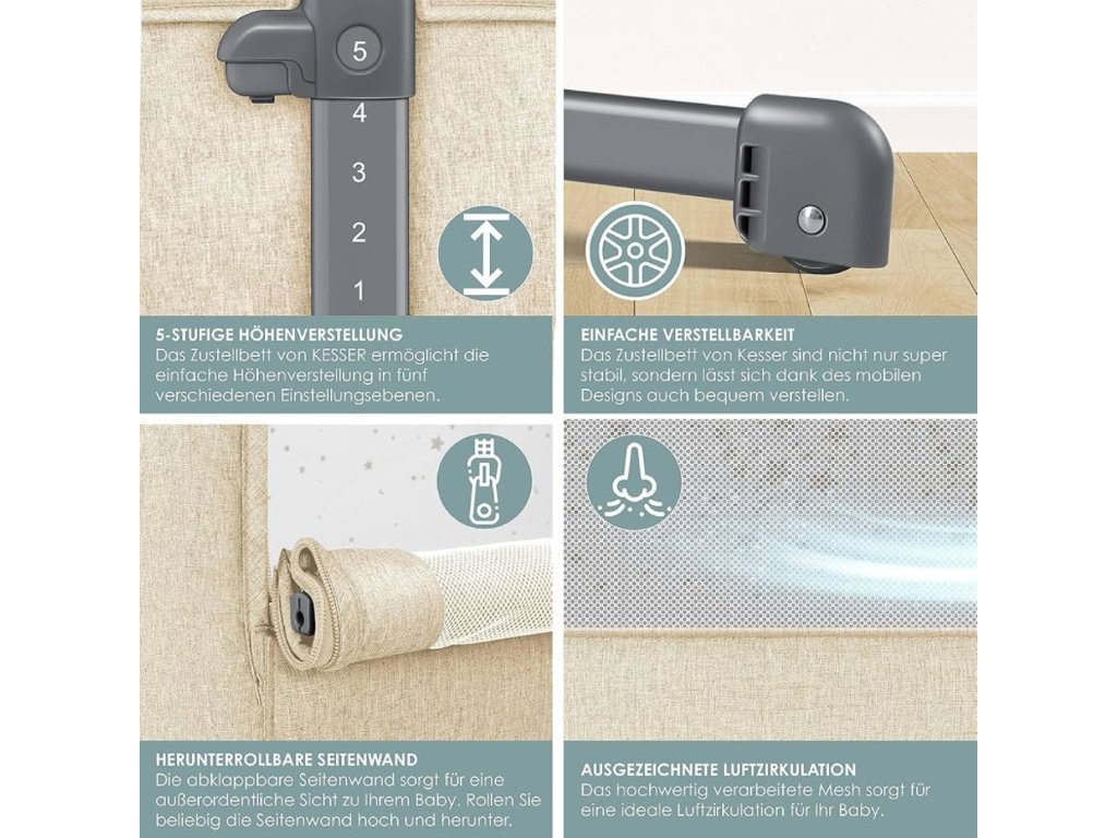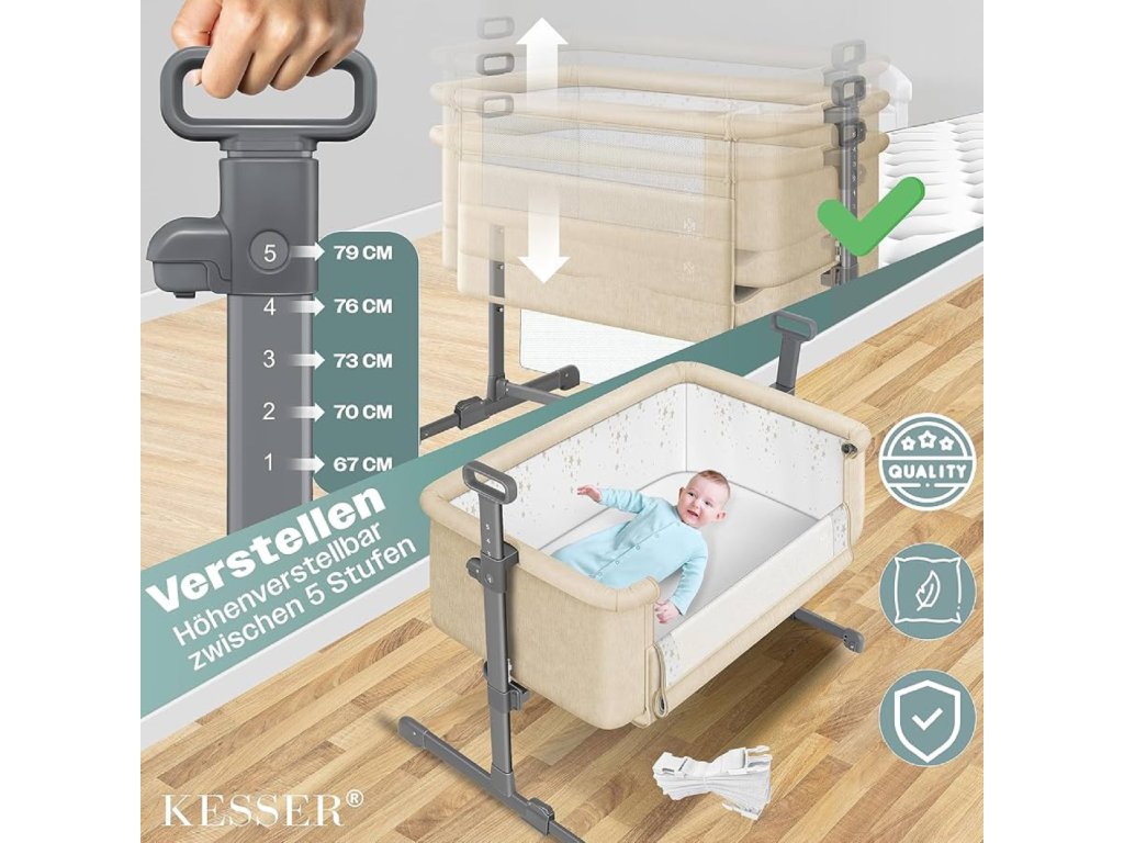 KESSER Hubi 3-in-1 je multifunkční dětská postýlka navržená tak, aby se přizpůsobila potřebám rodičů i miminka.