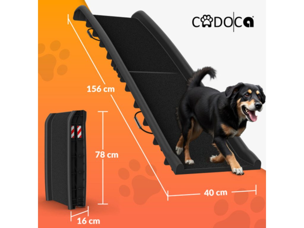 Bezpečný protiskluzový povrch, stabilní konstrukce a snadné složení dělají z rampy praktickou pomůcku pro každodenní cesty i delší výlety 🚗❤️