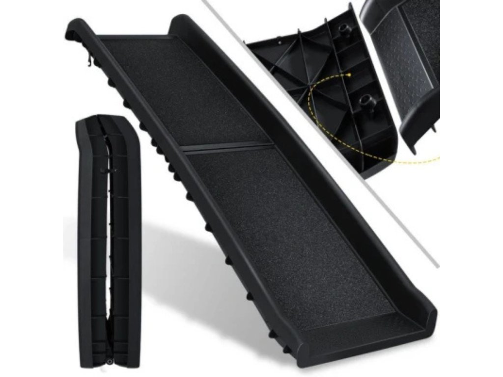 Tato skládací rampa je ideální volbou pro majitele psů 🐾, kteří chtějí svým mazlíčkům usnadnit cestování autem 🚗 a zároveň zajistit jejich bezpečnost 🛡️ a pohodlí 🛋️.