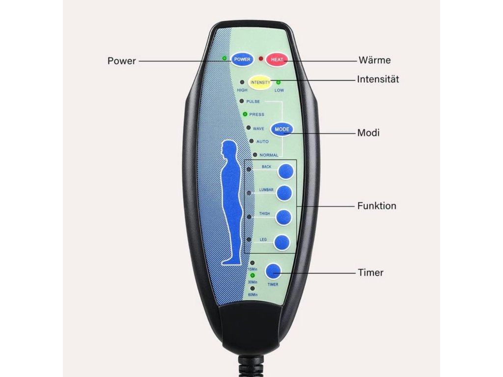 • 8 masážními body rozmístěnými přes ramena, kyčle, stehna i lýtka