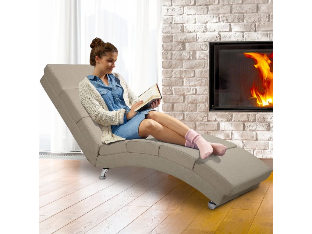 Uvolněte se kdykoli během dne s relaxačním lehátkem London v pískové barvě v textilním provedení.