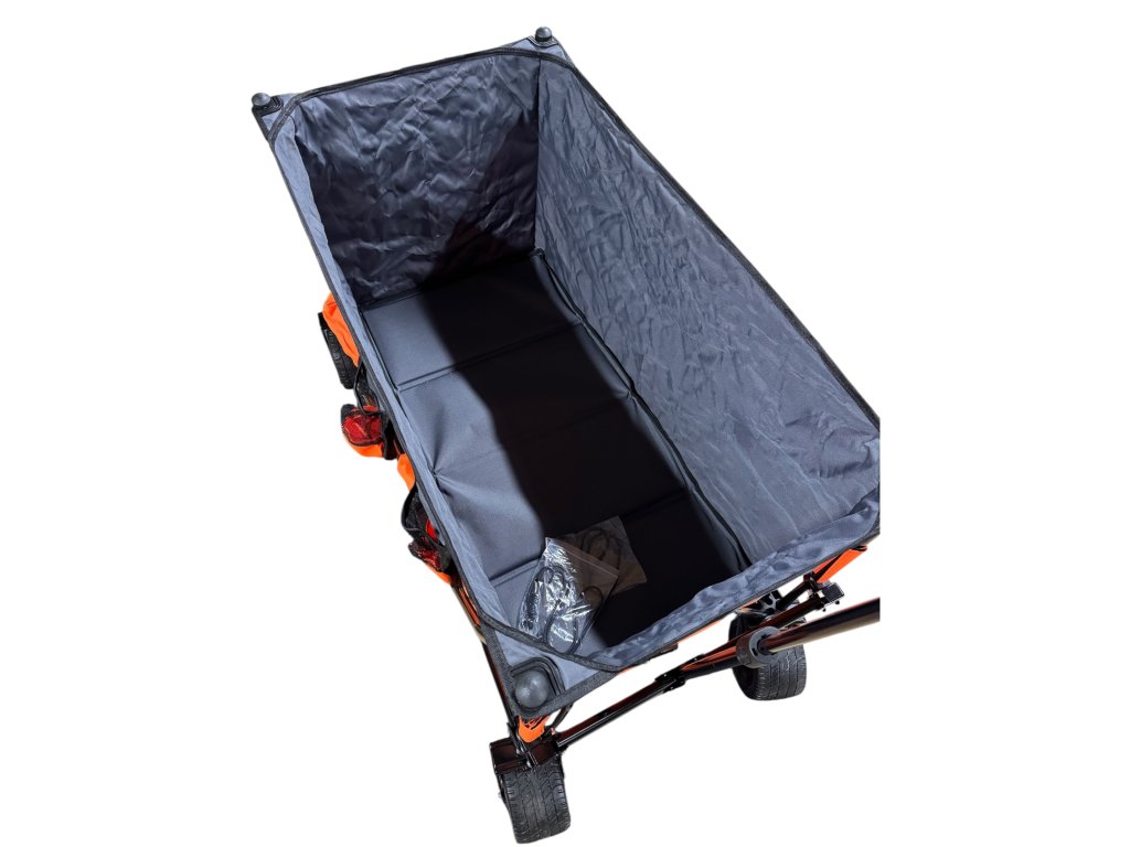 Díky nosnosti až 200 kg a objemu přibližně 300 l je tento vozík perfektním pomocníkem pro výlety, zahradní práce, tábory i nakupování ve velkém.