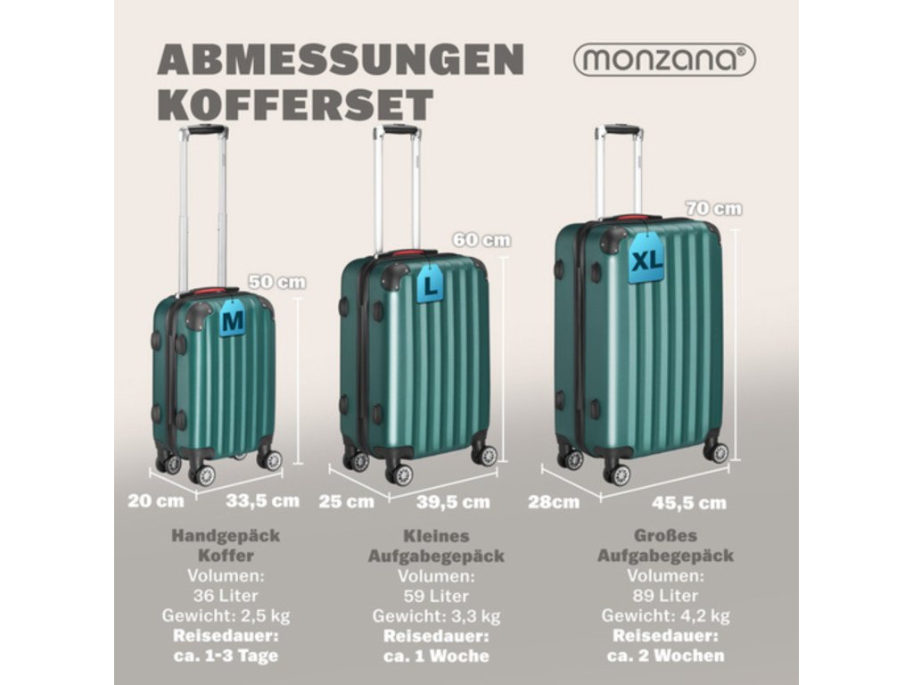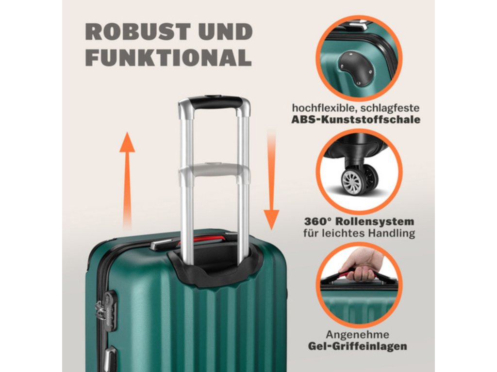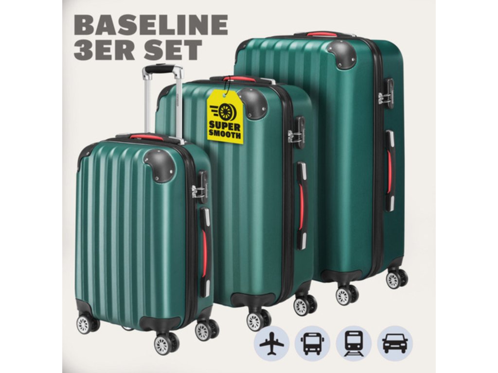 MONZANA® 3dílný set kufrů – zelený | ABS | 360° kolečka