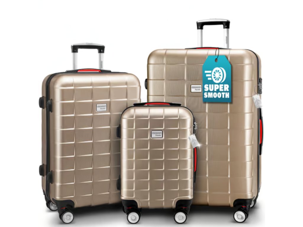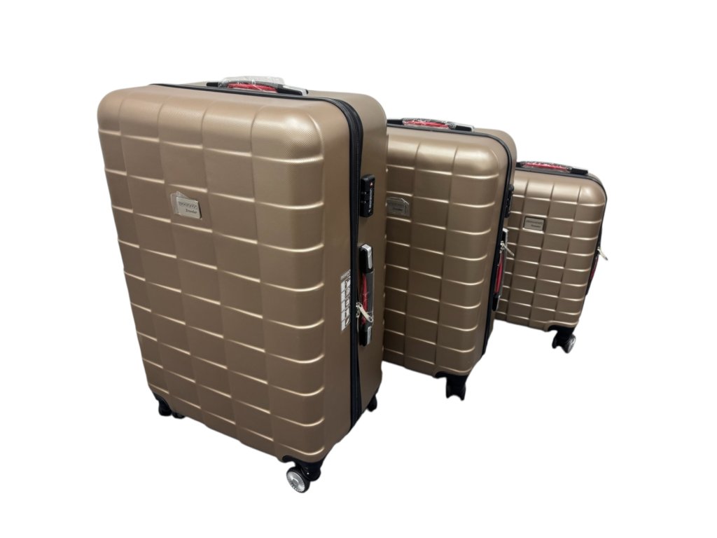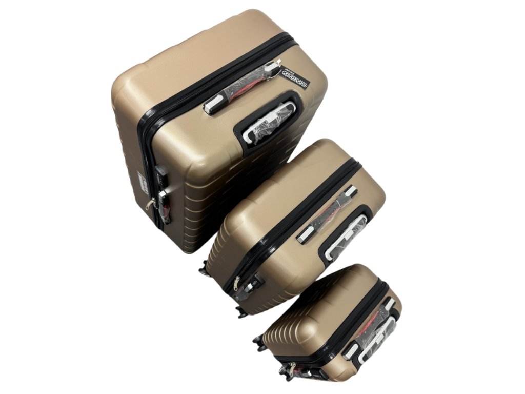 Cestujte stylově a bez starostí ✈️ Elegantní sada 3 kufrů EXOPACK v champagne barvě nabízí odolnou ABS skořepinu, TSA zámek a tichá 360° kolečka.