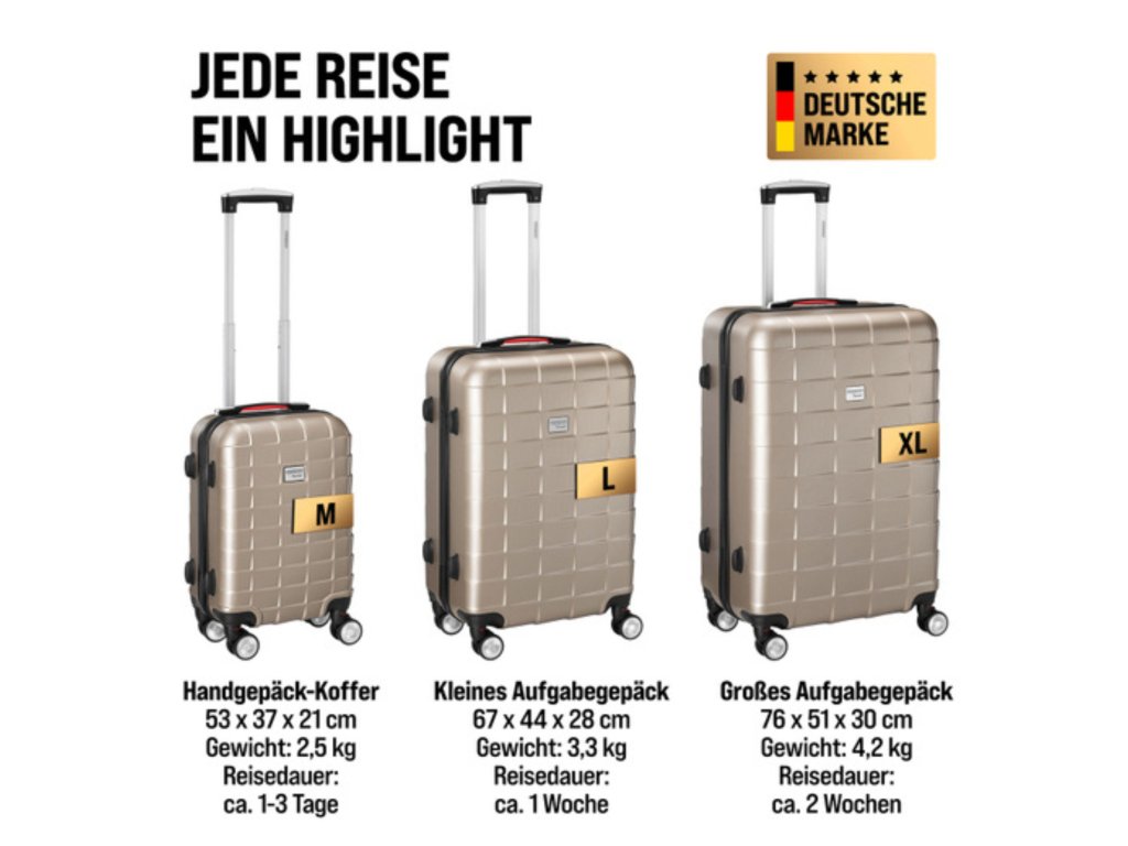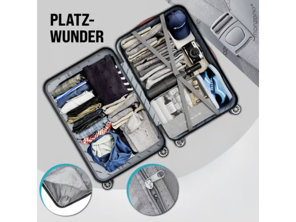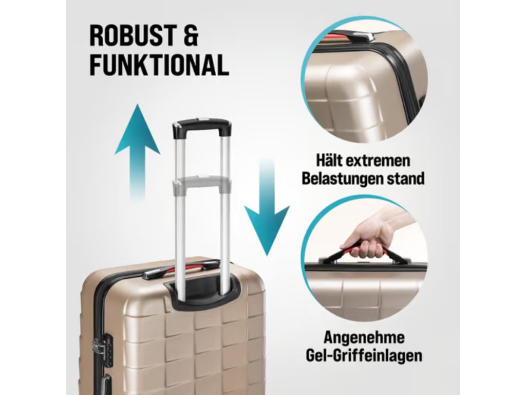 Každý kufr je vyroben z odolného ABS plastu, který dobře zvládá běžné zacházení při přepravě a zároveň si zachovává nízkou hmotnost.