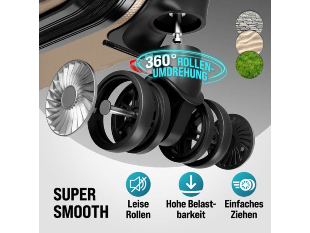 Velkým benefitem jsou 4 otočná kolečka (360°), díky kterým je manipulace s kufrem maximálně pohodlná – ať už na letišti, nádraží nebo ve městě.