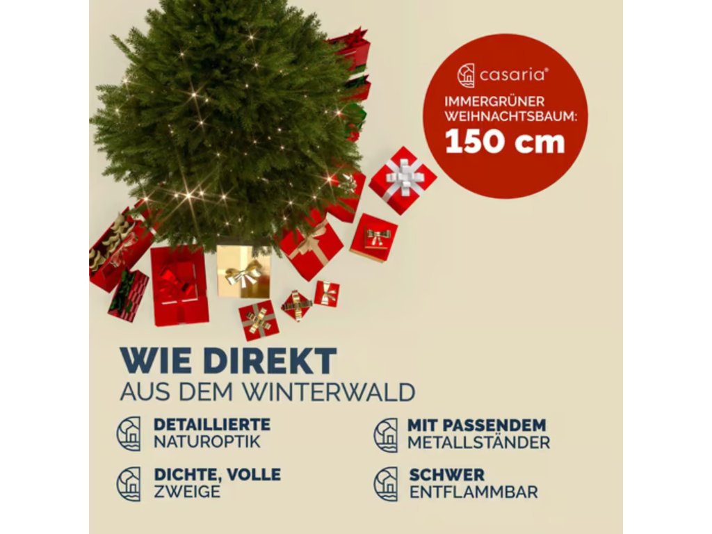 Snadná montáž, kovový stojan, opakovaně použitelný – bez starostí i bez jehličí! 🌟