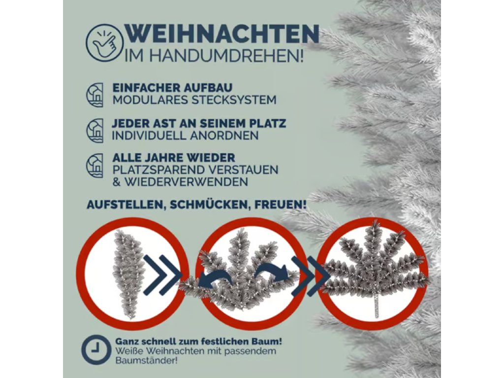 Tento elegantní umělý vánoční stromek v bílé barvě (150 cm) vnese do vašeho domova čistou zimní atmosféru ❄️ a perfektně doplní vánoční dekorace.
