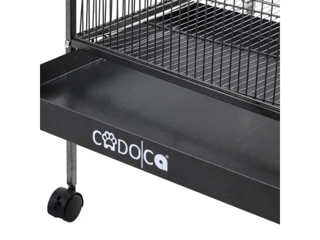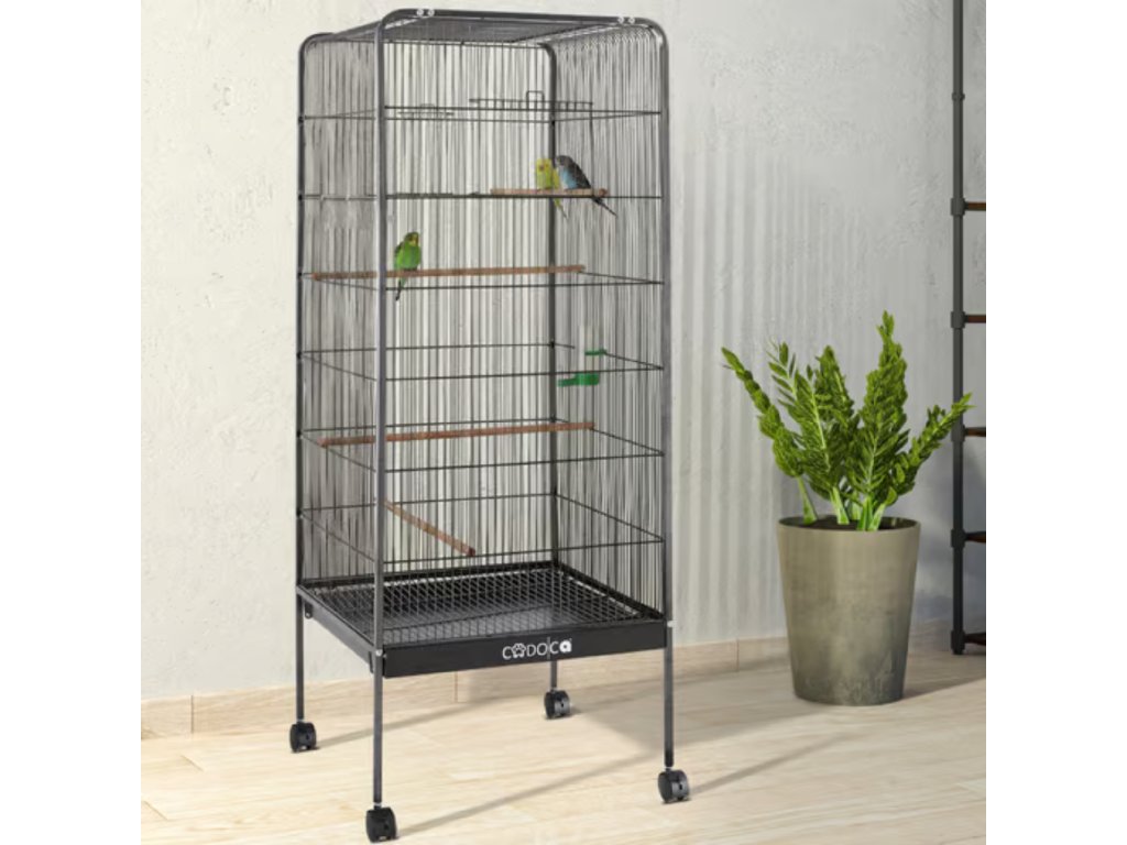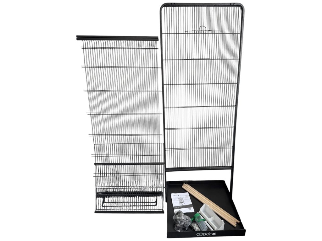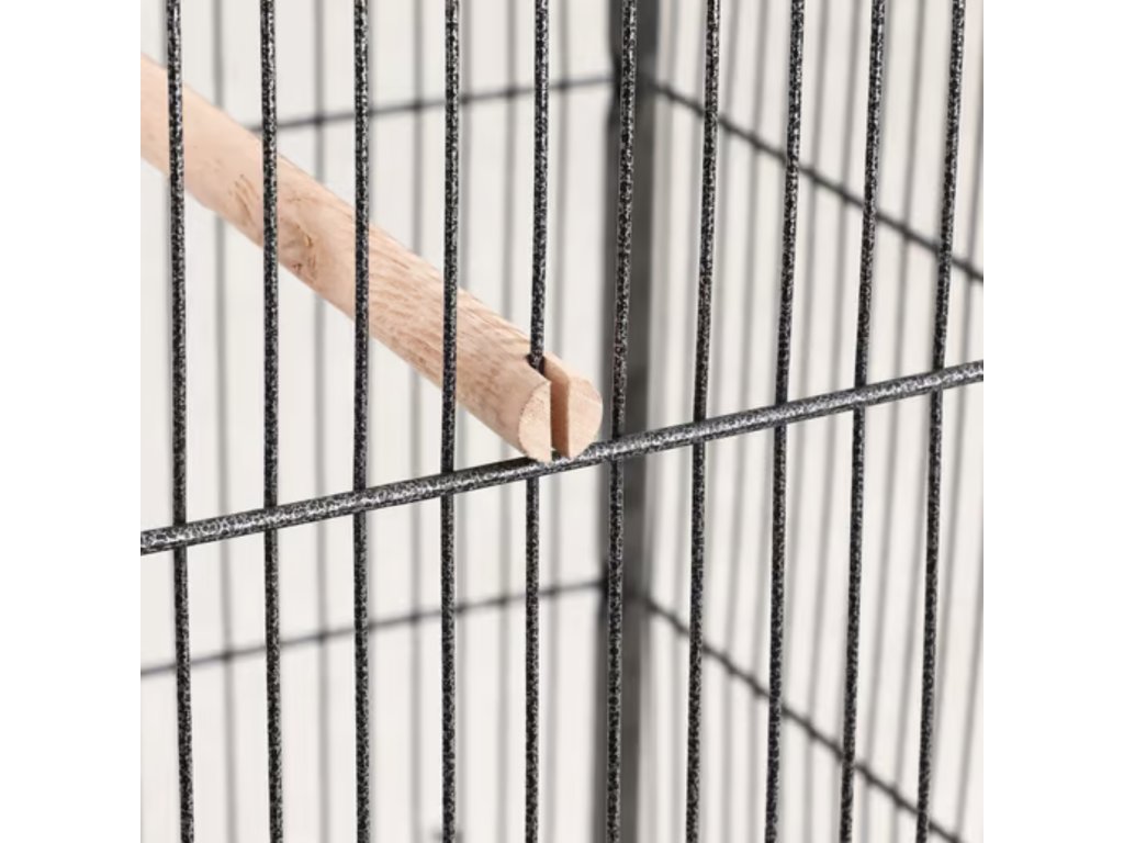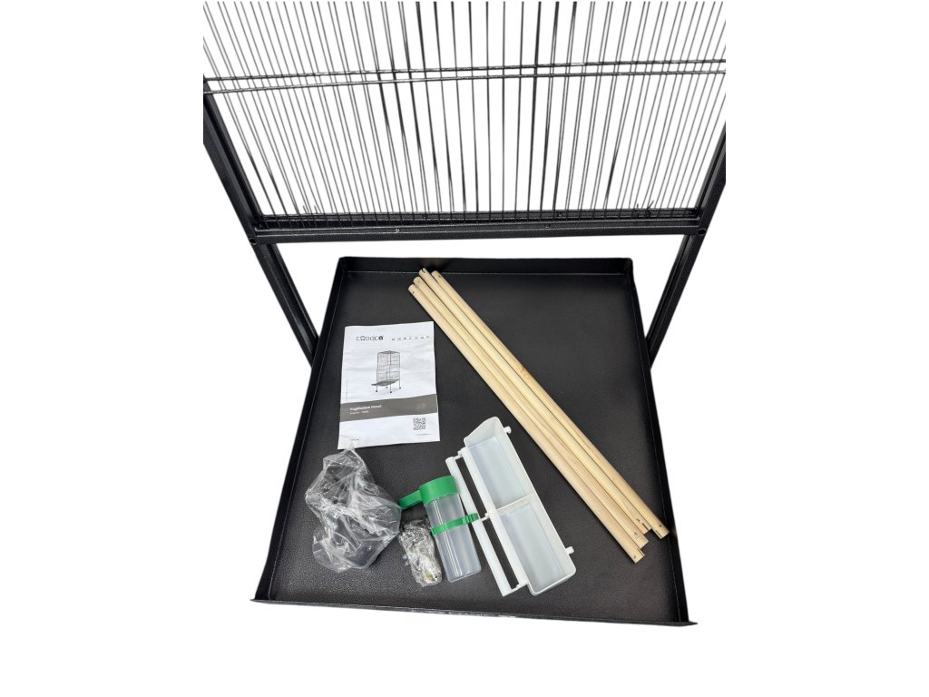 • 🔧 Vybavení v balení: 1× voliéra, 4× dřevěné bidýlky, 1× vodník + miska, 1× výsuvná písková zásuvka, 4× kolečka