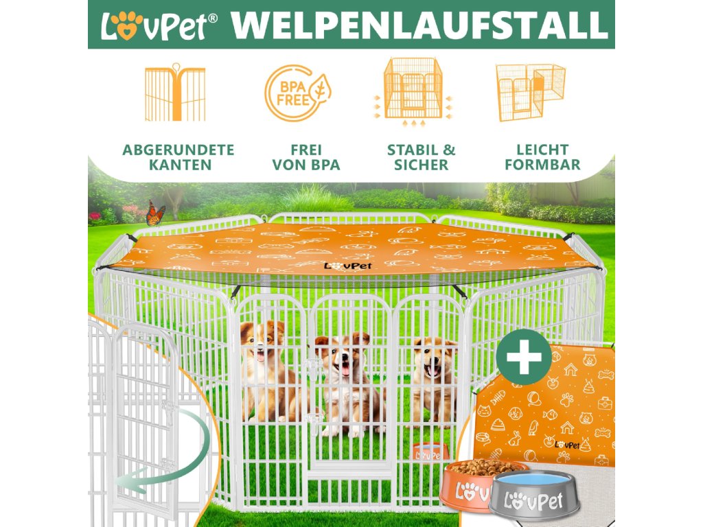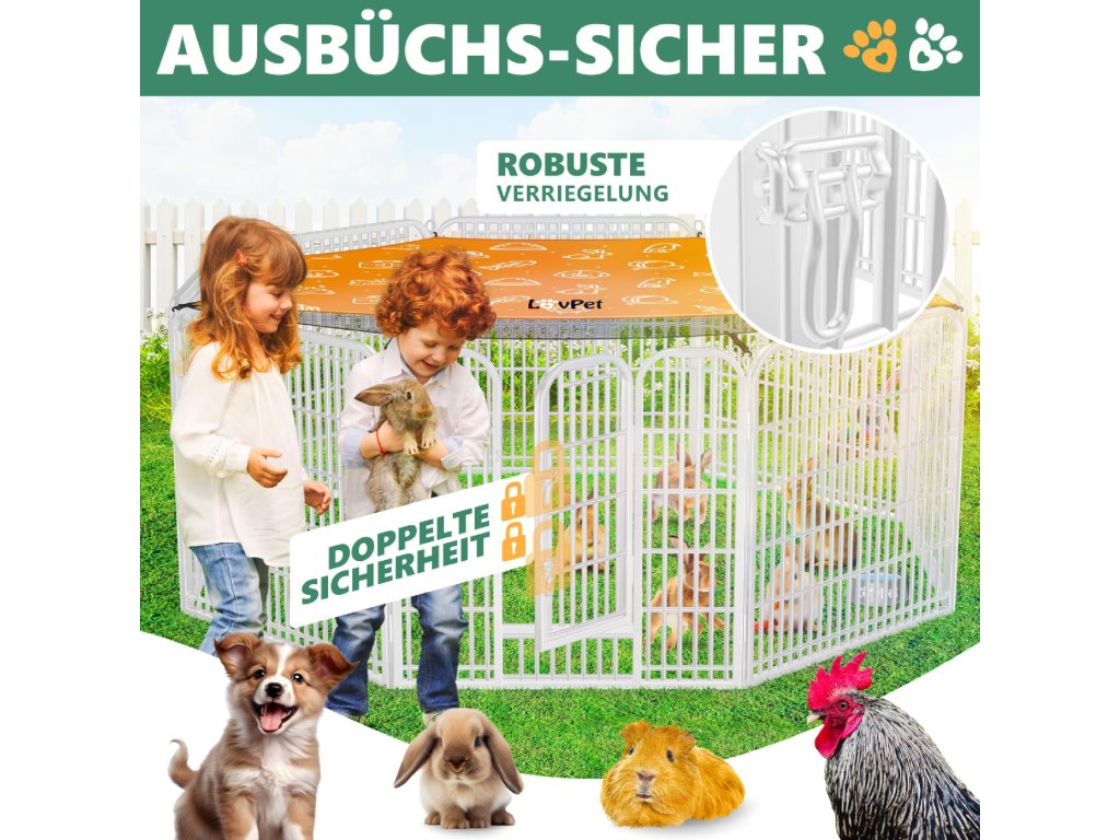 Díky své velikosti nabízí výběh dostatek prostoru pro hraní, pohyb i odpočinek zvířat a pomáhá vytvořit bezpečné prostředí doma i venku.