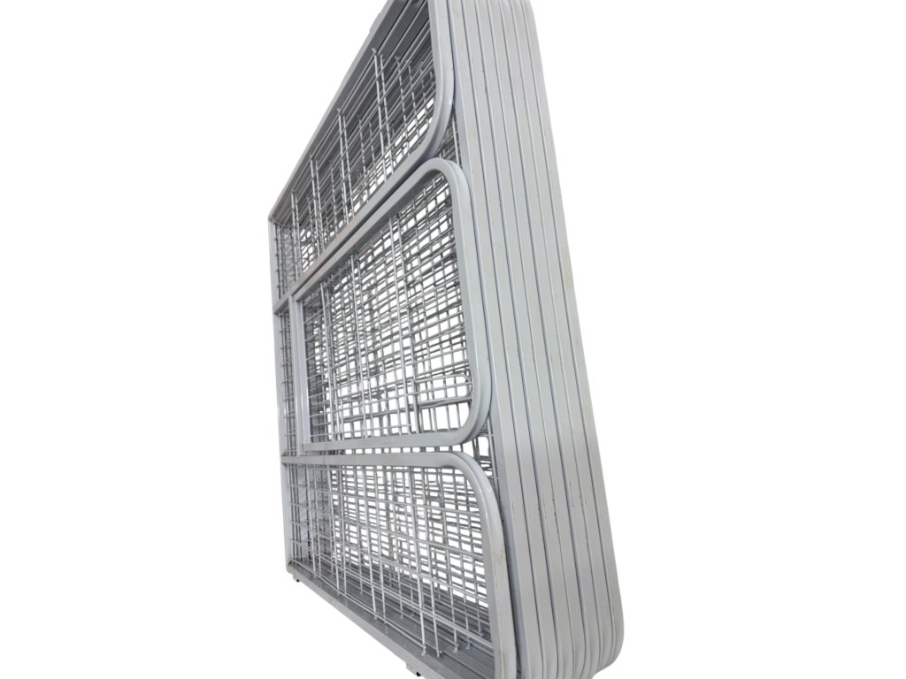 Spojení panelů pomocí kovových tyčí umožňuje rychlou montáž i demontáž bez nářadí, takže výběh lze snadno složit nebo převážet.