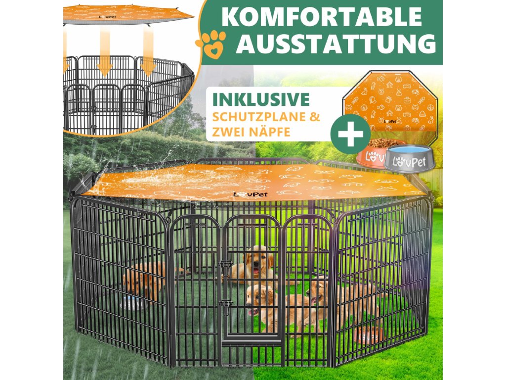 Díky své velikosti nabízí výběh dostatek prostoru pro hraní, pohyb i odpočinek zvířat a pomáhá vytvořit bezpečné prostředí doma i venku.
