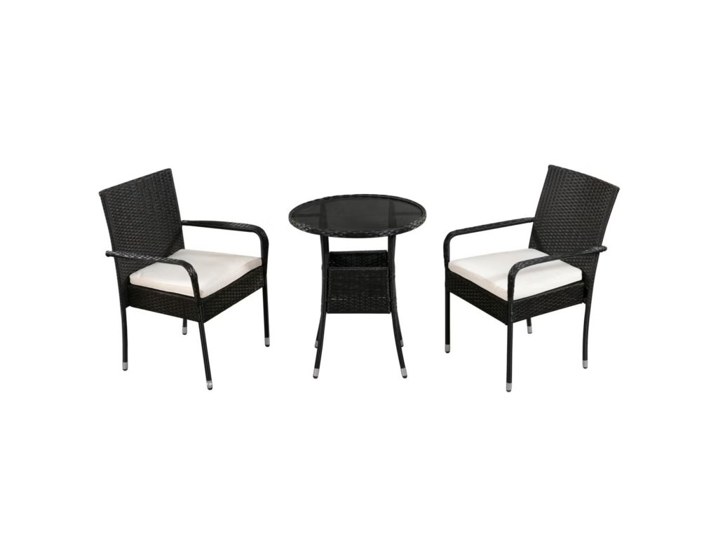 Set je ideální pro menší i střední prostory – zahradu, balkon nebo terasu – a díky nadčasové černé barvě jej snadno sladíš s dalším nábytkem.